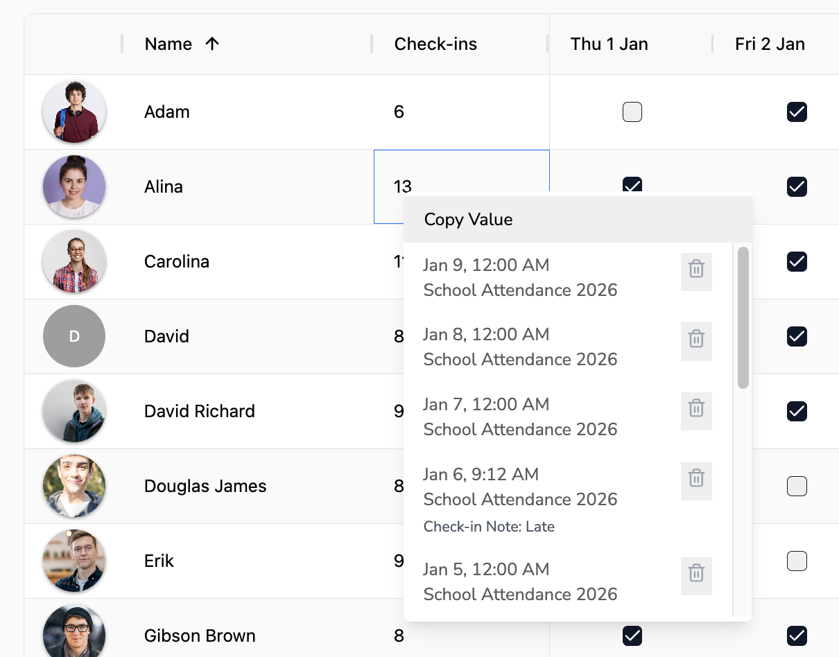 Spot present and missing attendees instantly.